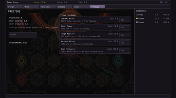- Prestige & Ascension — reset for Ember Essence, then spend it on Eternal Upgrades that carry into every future run